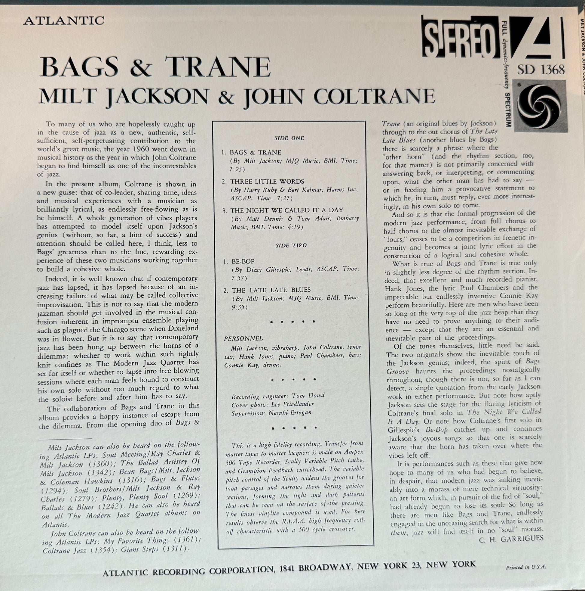 John Coltrane/Milt Jackson - Bags & Trane (Early 70’s Atlantic)
